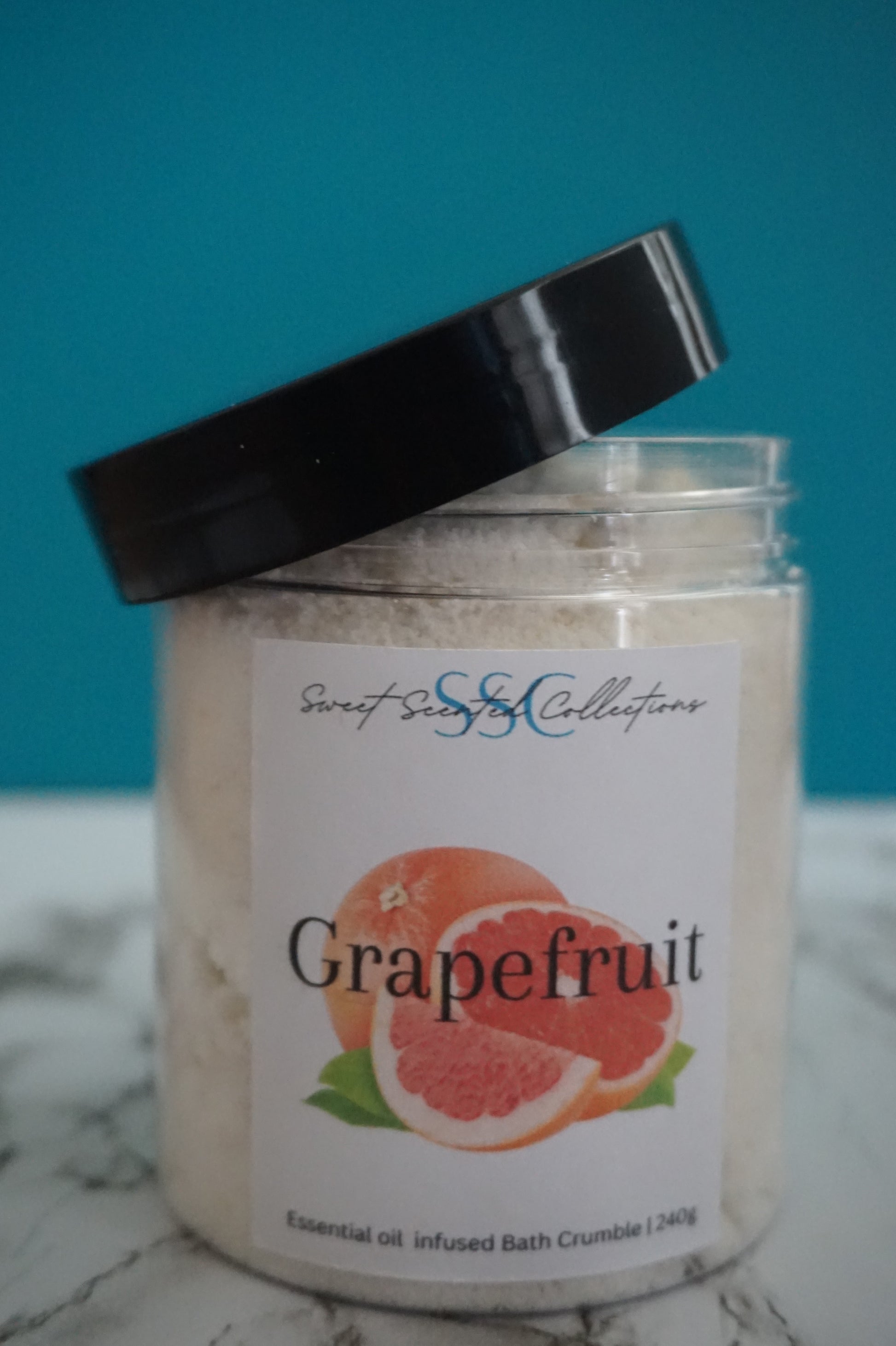أحب رائحة الجريب فروت الطازجة الحلوة ولكن الحمضية. استرخي ودع كل التوتر يذوب مع فتات حمام الجريب فروت.